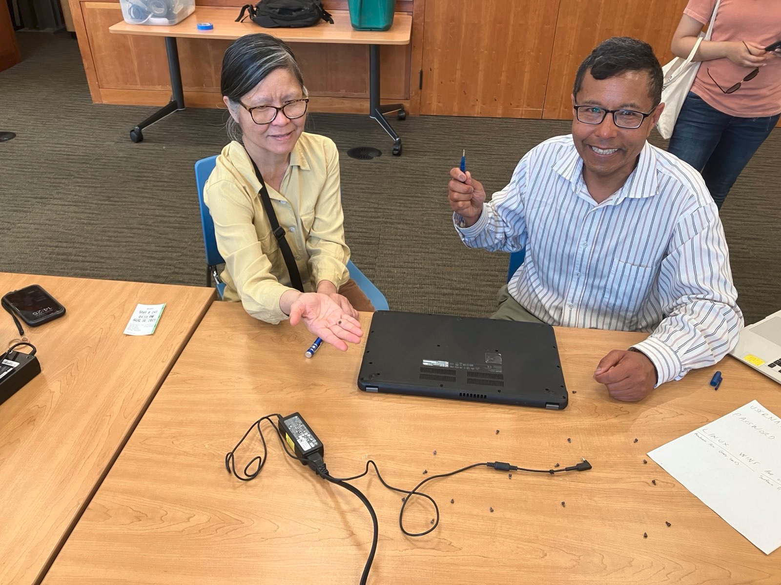 Besides run-of-the-mill laptops, one of our volunteers helped a new user install Linux on a Chromebook. From across the table it looked like the hard part was removing a bunch of screws to put it in developer mode, and then putting all the screws back.